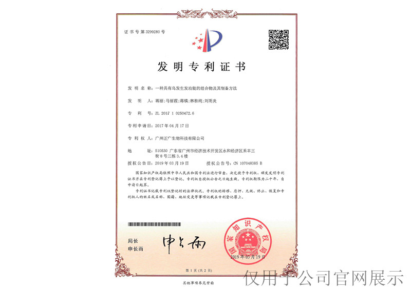 • 一種具有烏發(fā)生發(fā)功能的組合物及其制備方法授權(quán)專利證書(shū)