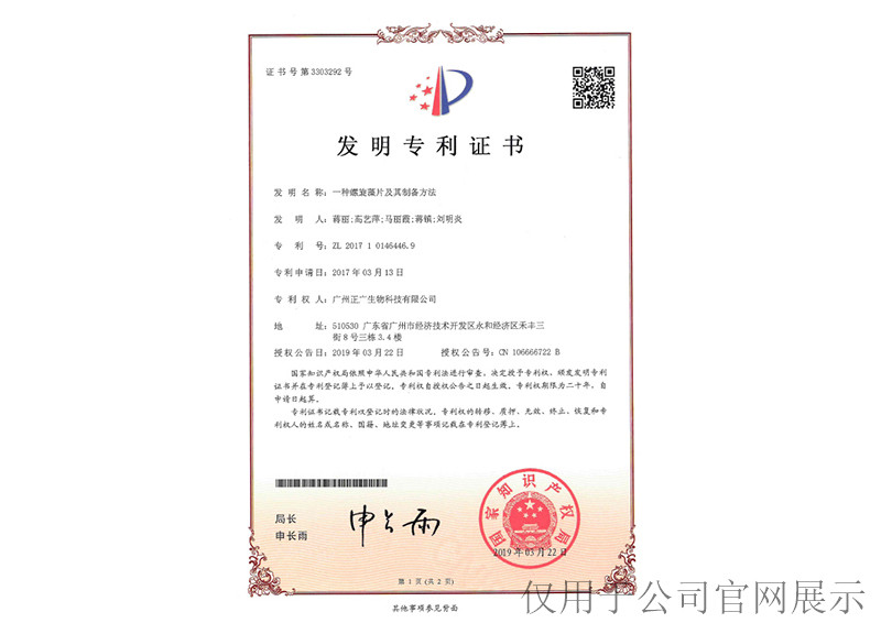 • 一種螺旋藻片及其制備方法 授權(quán)專利證書(shū)